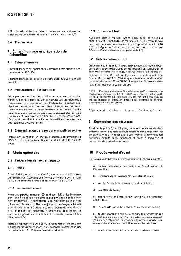 ISO 6588:1981 - Papier, carton et pâtes -- Détermination du pH des extraits aqueux