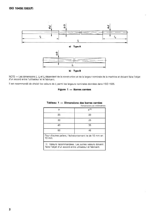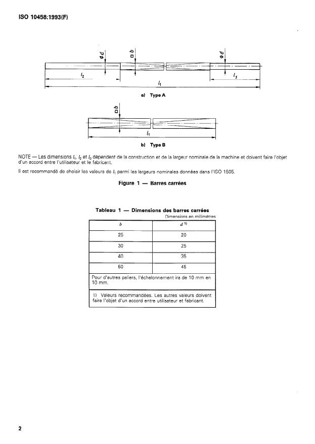 ISO 10458:1993 - Matériel pour l'industrie textile -- Barres carrées pour enrouleurs relatives aux matériels de teinture et de finissage -- Dimensions