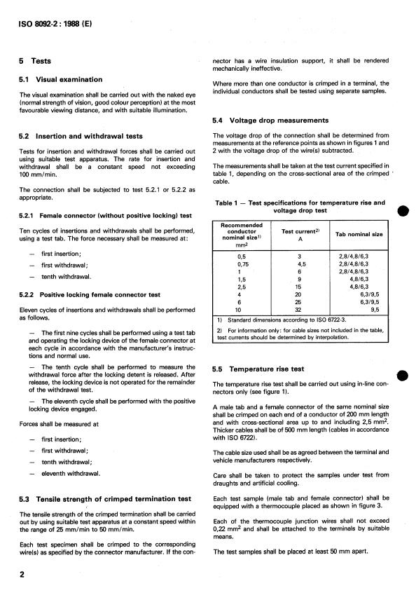 ISO 8092-2:1988 - Road vehicles — Flat, quick-connect terminations — Part 2: Tests and performance requirements for single pole connections Released:11/17/1988