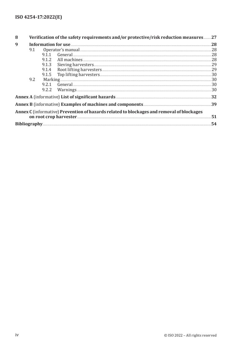 Keywords: ISO 4254-17:2022, root crop harvesters, agricultural machinery safety, haulm topping, sieving harvesters, operator’s manual, machine guarding, safety verification.