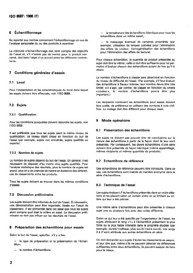 ISO 8587:1988 - Sensory analysis -- Methodology -- Ranking