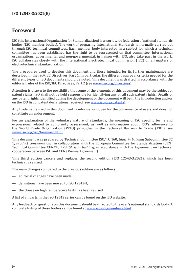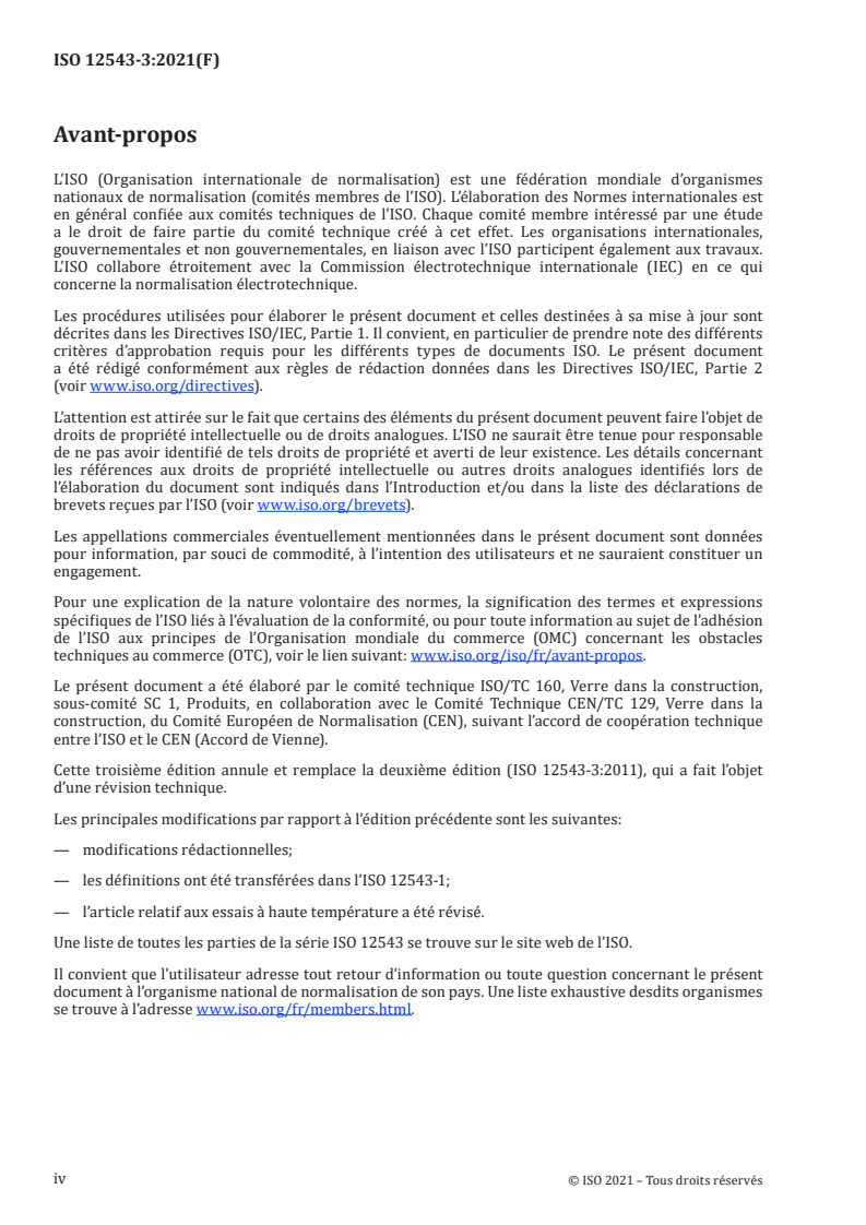 Cette troisième édition annule et remplace la deuxième édition (ISO 12543-3:2011), qui a fait l’objet