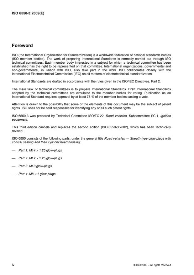 ISO 6550 consists of the following parts, under the general title Road vehicles — Sheath-type glow-plugs with