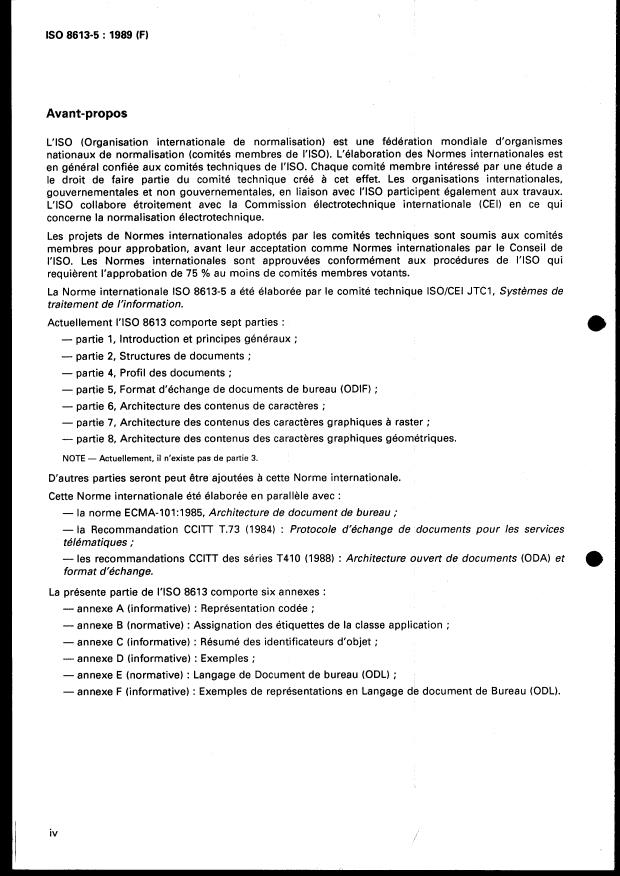 ISO 8613-5:1989 - Traitement de l'information -- Bureautique -- Architecture des documents de bureau (ODA) et format d'échange