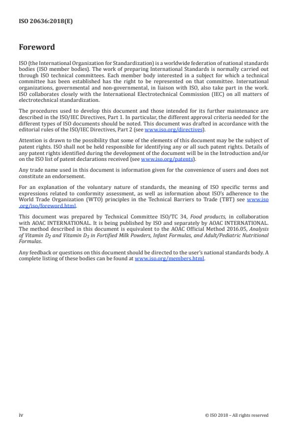 - ISO 20636:2018 is equivalent to AOAC Official Method 2016.05 (as noted in the introduction).