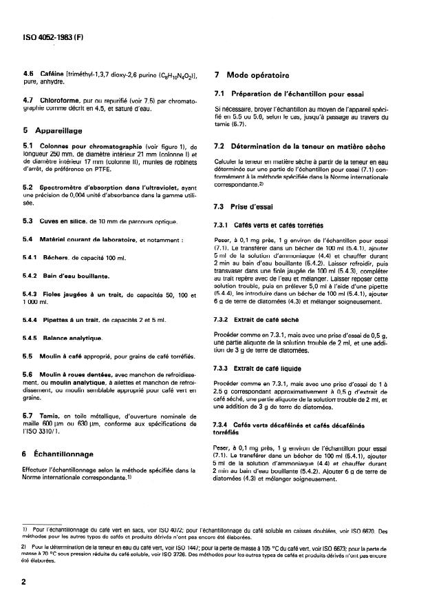 ISO 4052:1983 - Cafés -- Détermination de la teneur en caféine -- Méthode de référence