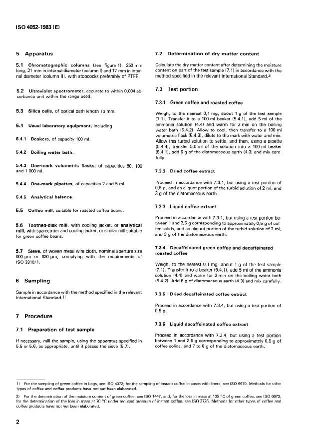 ISO 4052:1983 - Coffee -- Determination of caffeine content (Reference method)