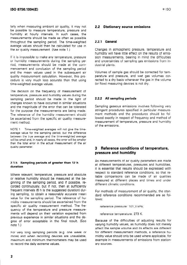 Describes procedures for adjusting air quality measurements for changes in temperature, pressure and humidity during the sampling period. Specifies the reference conditions of temperature, pressure and humidity to be used when reporting the results. The procedures and reference conditions are applicable to air quality measurement methods and apply to measurements made in ambient and workplace atmospheres and to the measurement of stationary source emissions.