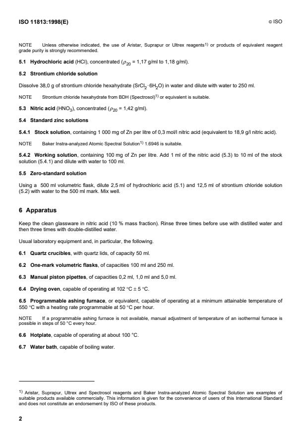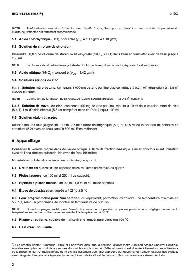 NOTE Sauf indication contraire, l'utilisation des réactifs Aristar, Suprapur ou Ultrex ou des produits de pureté et de
