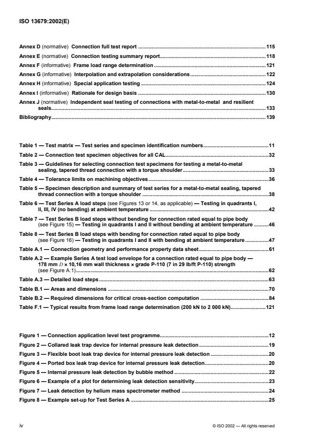 ISO 13679:2002 establishes minimum design verification testing procedures and acceptance criteria for casing and tubing connections for the oil and natural gas industries. These physical tests are part of a design verification process and provide objective evidence that the connection conforms to the manufacturer's claimed test load envelope and limit loads. It categorizes test severity into four test classes. It describes a system of identification codes for connections. ISO 13679:2002 does not provide the statistical basis for risk analysis. ISO 13679:2002 addresses only three of the five distinct types of primary loads to which casing and tubing strings are subjected in wells: fluid pressure (internal and/or external), axial force (tension or compression), bending (buckling and/or wellbore deviation), as well as make-up torsion. It does not address rotation torsion, non-axisymetric (area, line or point contact). ISO 13679:2002 specifies tests to be performed to determine the galling tendency, sealing performance and structural integrity of casing and tubing connections that apply to the service application and not to the diameter of the pipe.