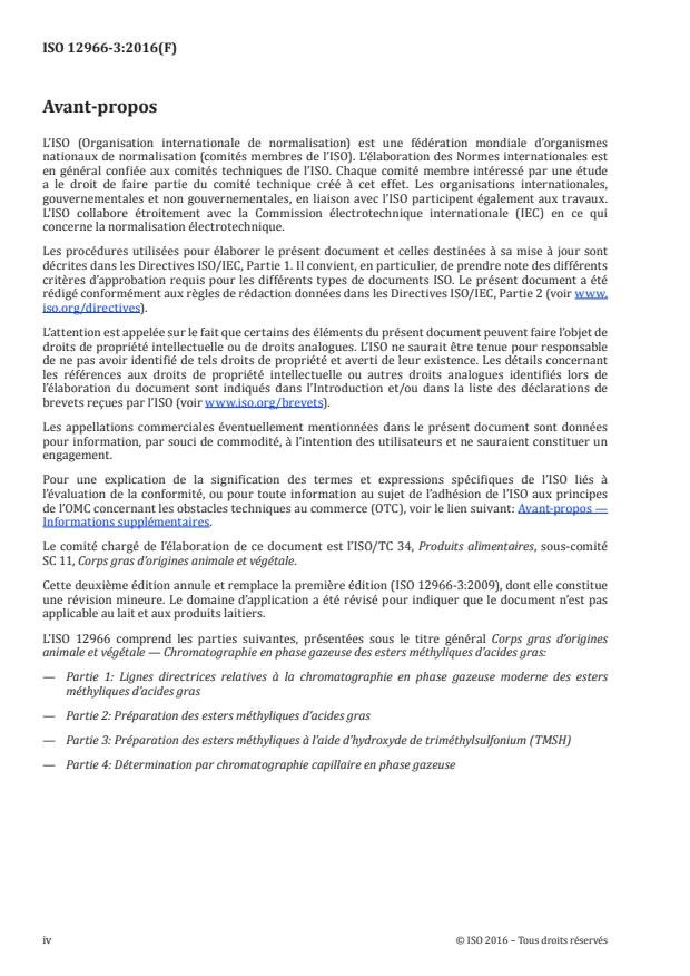 ISO 12966-3:2016 - Corps gras d'origines animale et végétale -- Chromatographie en phase gazeuse des esters méthyliques d'acides gras