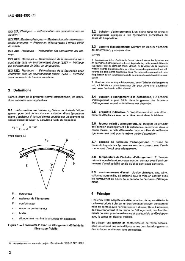 ISO 4599:1986 - Plastiques -- Détermination de la fissuration sous contrainte dans un environnement donné (ESC) -- Méthode de l'éprouvette courbée