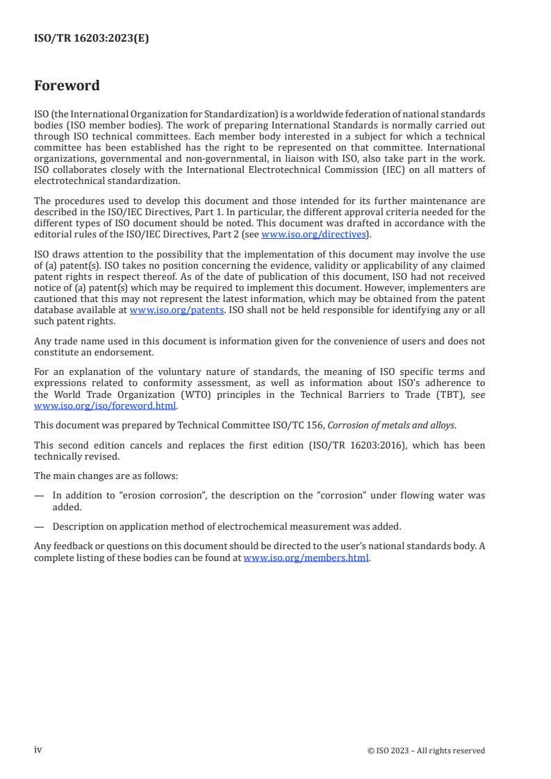 - Prepared by ISO/TC 156 (Corrosion of metals and alloys); ISO/TR 16203:2023 updates the 2016 edition and adds electrochemical measurement guidance.