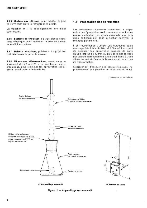 Adapter la fiole au réfrigerant (1.3.1) et faire circuler fer(lll) pendant l’essai si la vitesse de corrosion, mise en