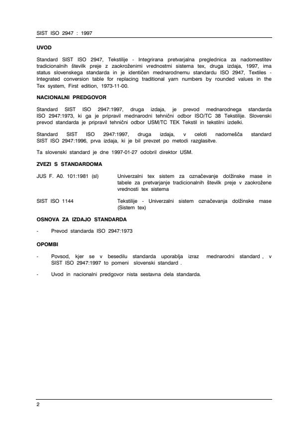 ISO 2947:1973 - Textiles -- Integrated conversion table for replacing traditional yarn numbers by rounded values in the Tex System