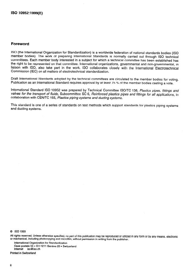 International Standard IS0 10952 was prepared by Technical Committee ISO/TC 138, Plastics pipes, fittings and