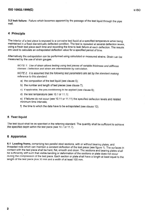 ISO 10952:1999 is a standard published by the International Organization for Standardization (ISO). Its full title is "Plastics piping systems — Glass-reinforced thermosetting plastics (GRP) pipes and fittings — Determination of the resistance to chemical attack from the inside of a section in a deflected condition". This standard covers: Plastics piping systems — Glass-reinforced thermosetting plastics (GRP) pipes and fittings — Determination of the resistance to chemical attack from the inside of a section in a deflected condition