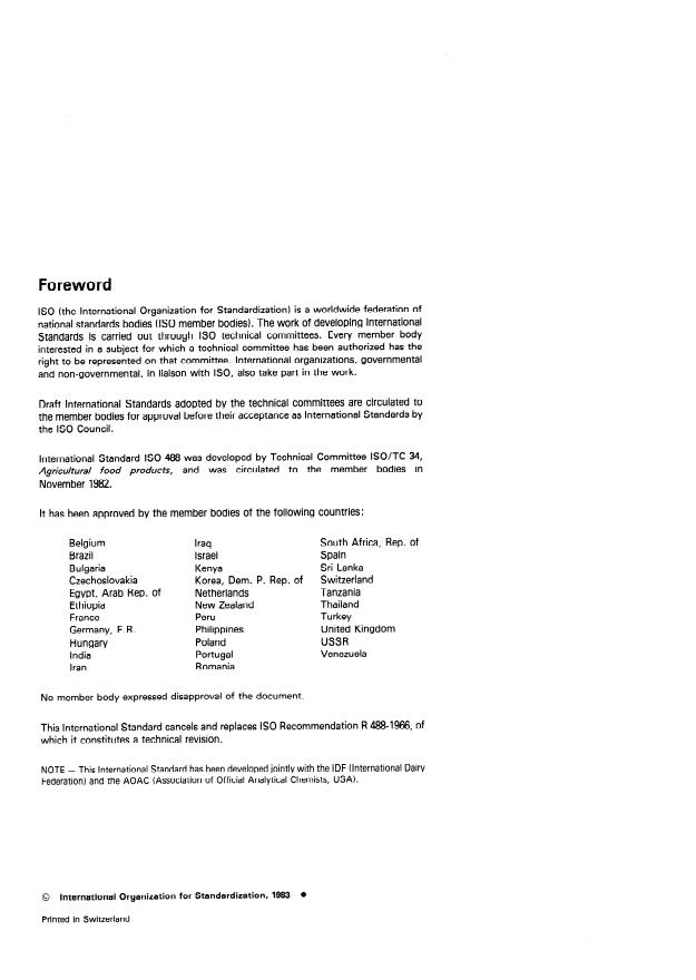 UDC 637.12.043 Ref. No. IS0 488-1983 (E)
