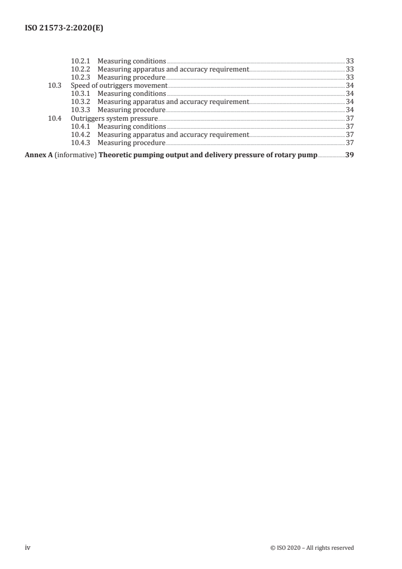 - Rotary pump: testing methods for single‑roller and double‑roller types; Annex A covers theoretical output and delivery pressure