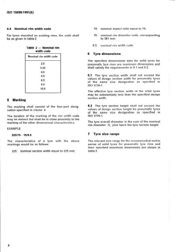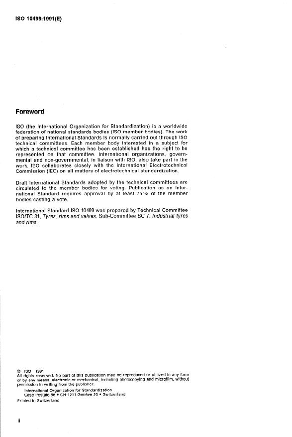 ISO 10499-1:1991 is a standard published by the International Organization for Standardization (ISO). Its full title is "Industrial tyres and rims — Rubber solid tyres (metric series) for pneumatic tyre rims — Part 1: Designation, dimensions and marking". This standard covers: Industrial tyres and rims — Rubber solid tyres (metric series) for pneumatic tyre rims — Part 1: Designation, dimensions and marking