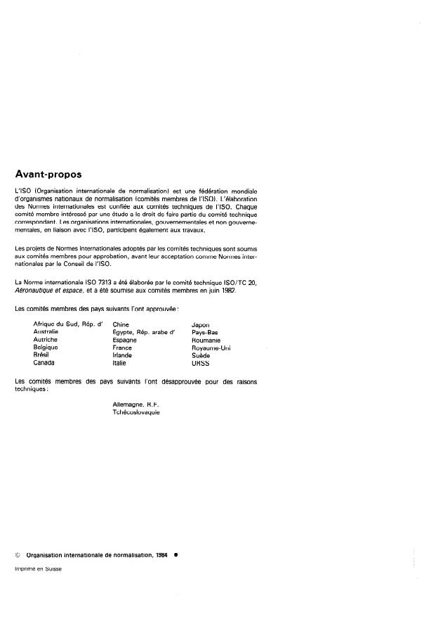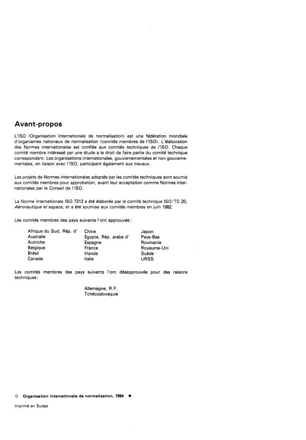 International Standard IS0 7313 was developed by Technical Committee ISO/TC 20,