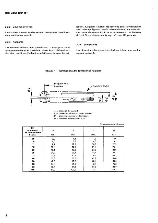 spécification de la tuyauterie flexible: (( IS0 7313)) et