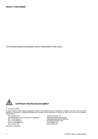 This CD-ROM contains the publication ISO/HL7 27932:2009 in HTML format.