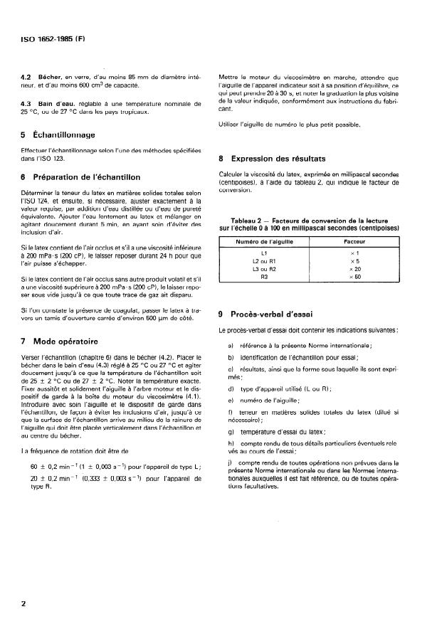ISO 1652:1985 - Latex de caoutchouc -- Détermination de la viscosité