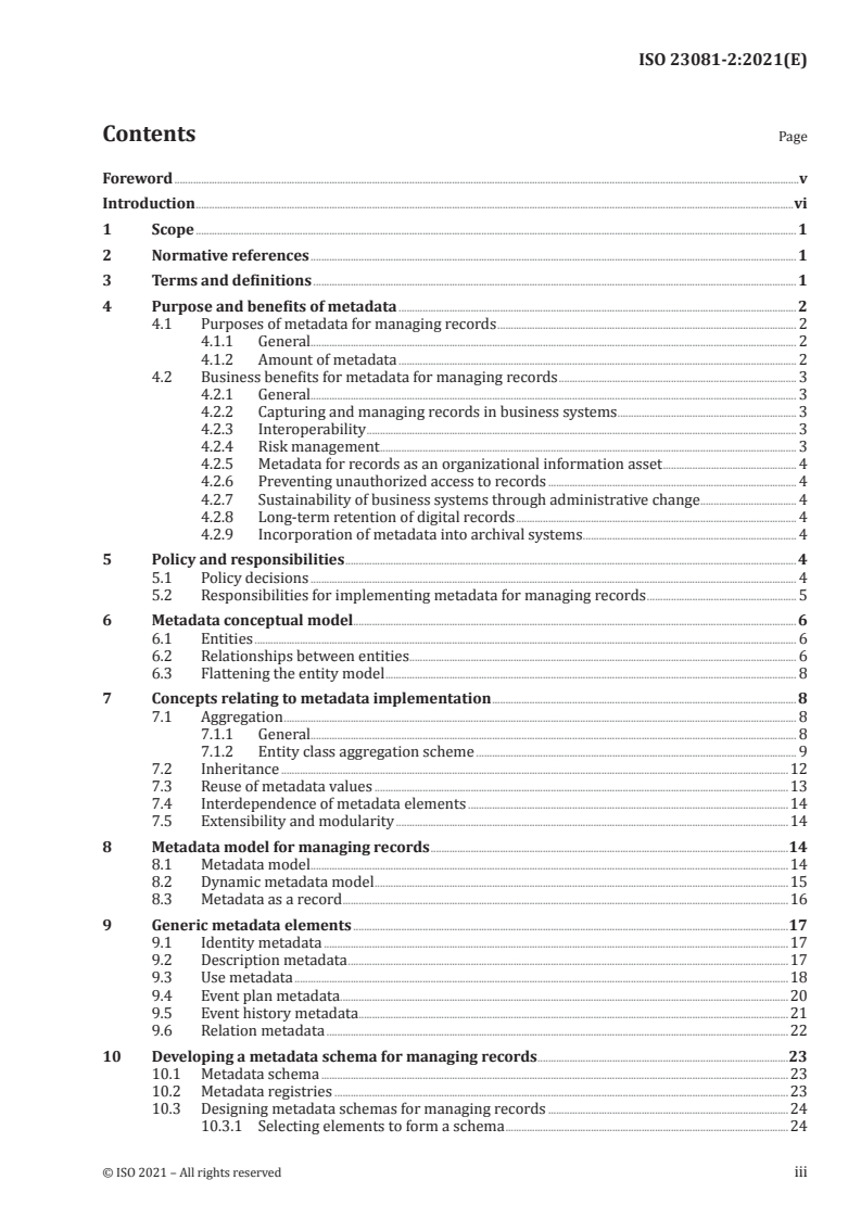 Keywords: ISO 23081-2, metadata for managing records, metadata schema, records management, interoperability, metadata registry, digital preservation.