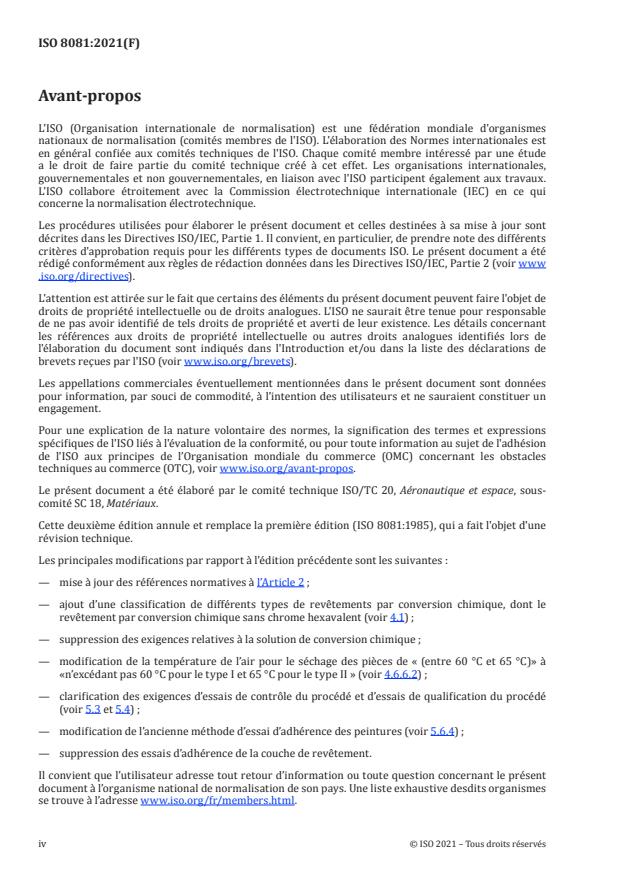 ISO 8081:2021 is an international standard that specifies the requirements for producing and testing general-purpose chemical conversion coatings on aluminium alloys used in aerospace manufacturing. This standard aims to enhance paint adhesion and improve corrosion resistance of aerospace aluminium components. It also covers chemical conversion coatings applied as touch-up treatments for anodic coatings. The document supports aerospace industries in maintaining consistent surface treatment quality, ensuring durability and reliability of aluminium alloy parts.