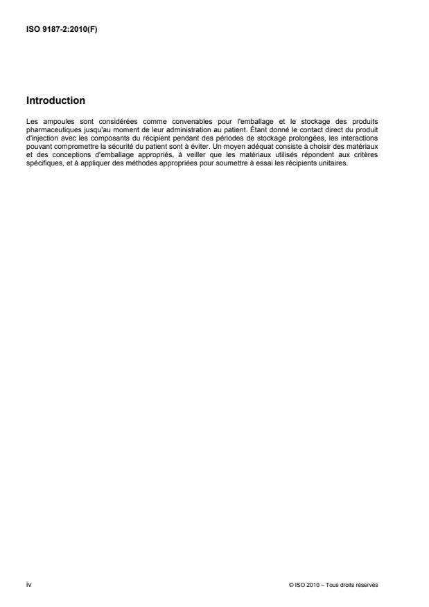 ISO 9187-2:2010 specifies materials, dimensions and requirements for forms of one-point-cut (OPC) ampoules (forms B, C and D) for injectables. Ampoules complying with ISO 9187-2:2010 are intended for single use only.