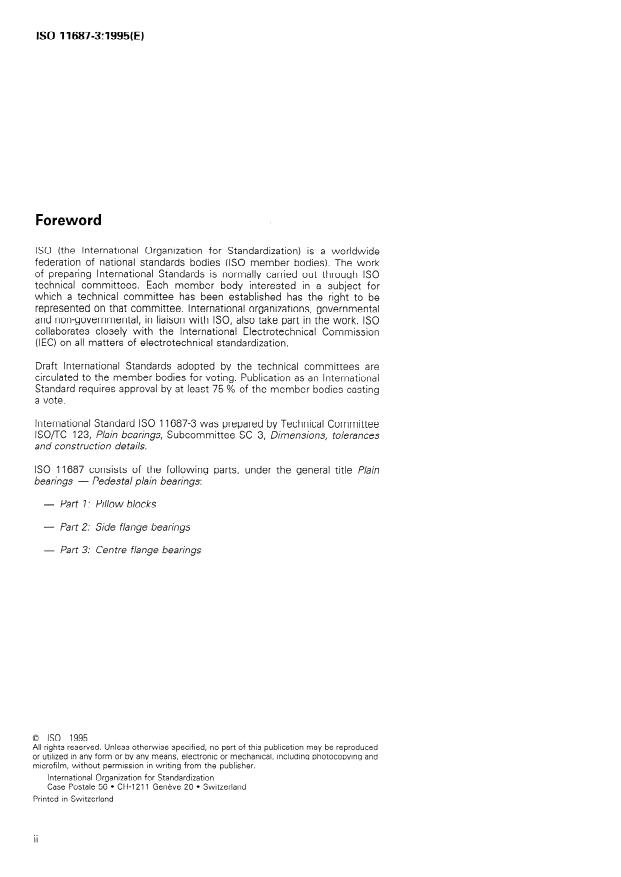 ISO 11687-3:1995 - Plain bearings -- Pedestal plain bearings