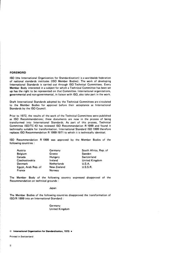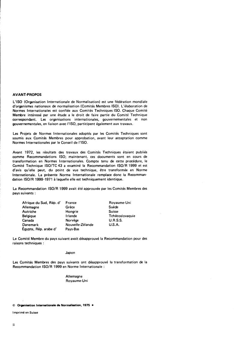 Committee iSO/TC43 has reviewed IS0 Recommendation R 1999 and found it