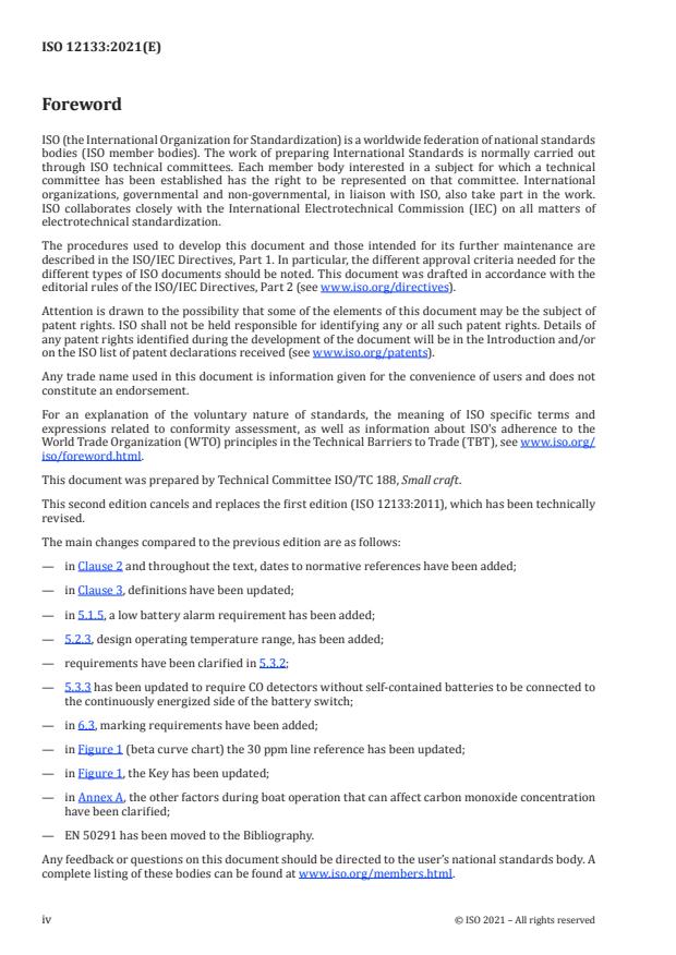 ISO 12133:2021 is a standard published by the International Organization for Standardization (ISO). Its full title is "Small craft — Carbon monoxide (CO) detection systems and alarms". This standard covers: This document specifies requirements for the design, construction and installation of carbon monoxide detection and alarm systems in small craft. Annex A provides essential educational material about carbon monoxide relative to small craft, and recreational boating recommendations.