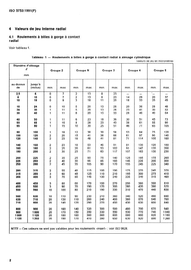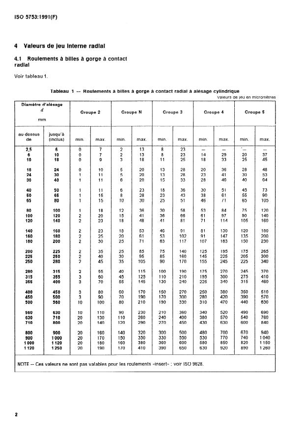 4 Valeurs de jeu interne radial