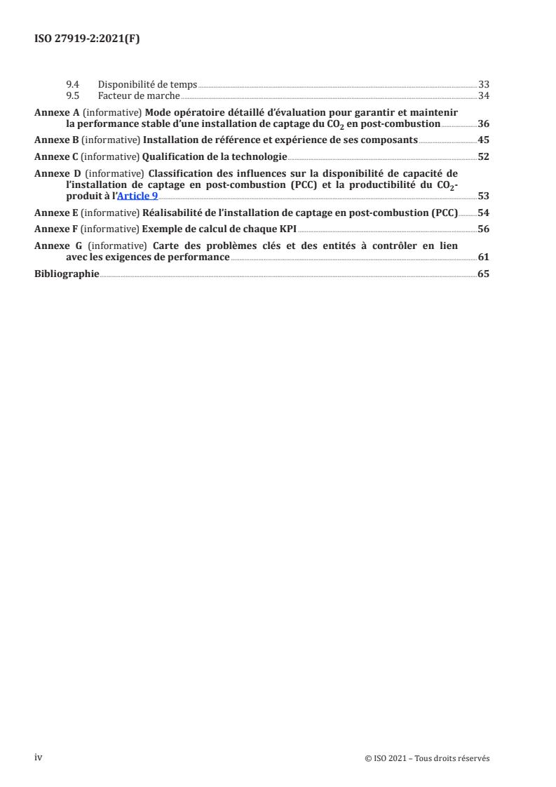 Le présent document fournit des définitions, des lignes directrices et des informations de support pour l’évaluation et l’élaboration des rapports (concernant les entités de conception basique et les résultats opérationnels d’une centrale ou unité de référence en tant que données de retour) pour garantir la performance (par conception) d’une installation de captage en post-combustion (PCC) intégrée à une centrale électrique hôte. L’installation de captage en post-combustion (PCC) sépare le CO2 de l’effluent gazeux de la centrale électrique en préparation de son transport et de son stockage géologique ultérieurs. Le système physique concerné est une centrale électrique unique, avec une unité auxiliaire facultative pour fournir l’énergie thermique requise pour l’installation de captage en post-combustion (PCC), et une installation unique de captage en post-combustion (PCC) comme décrit dans l’ISO 27919-1. Les formules et méthodes visant à garantir et maintenir une performance fiable, présentées dans le présent document, décrivent les problèmes couverts pendant les phases de conception et de construction et les pratiques qui documentent la fiabilité et la disponibilité pendant le fonctionnement de routine. Ces pratiques serviraient également de guide pour les programmes de maintenance continue. Le présent document ne donne pas de lignes directrices sur les études d’intercomparaison, de comparaison ou d’évaluation du fonctionnement des installations de captage en post-combustion (PCC) utilisant des technologies de captage différentes (c’est-à-dire, absorbants) et il ne précise pas de conditions de fonctionnement appropriées comme la température, etc.