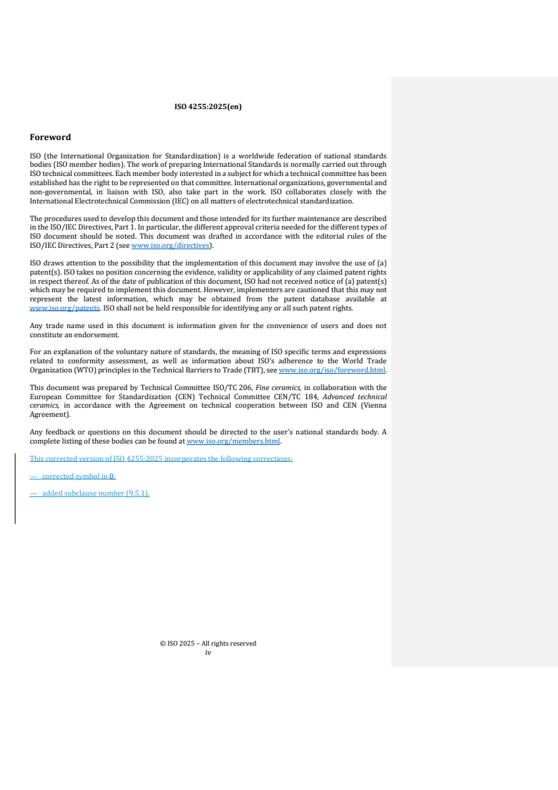 ISO 4255:2025 was prepared by ISO/TC 206 (Fine ceramics) in collaboration with CEN/TC 184 (Advanced technical ceramics). For comprehensive test programs, consult other ISO/CEN standards and technical guidance on mechanical testing of ceramics, composite characterization, and high‑temperature testing methodology.