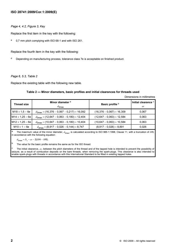 (Corrigendum)Road vehicles — Spark-plugs and their cylinder head housings — Basic characteristics and dimensions — Technical Corrigendum 1