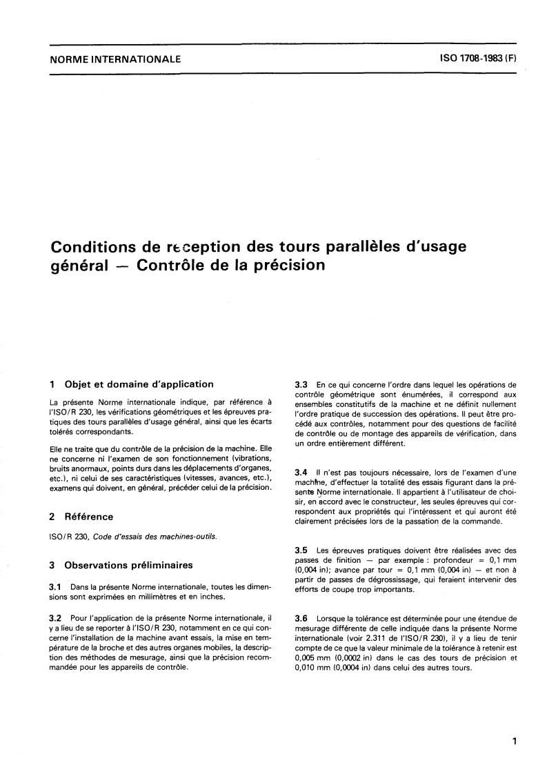 ISO 1708:1983 - Acceptance conditions for general purpose parallel lathes — Testing of the accuracy Released:6/1/1983