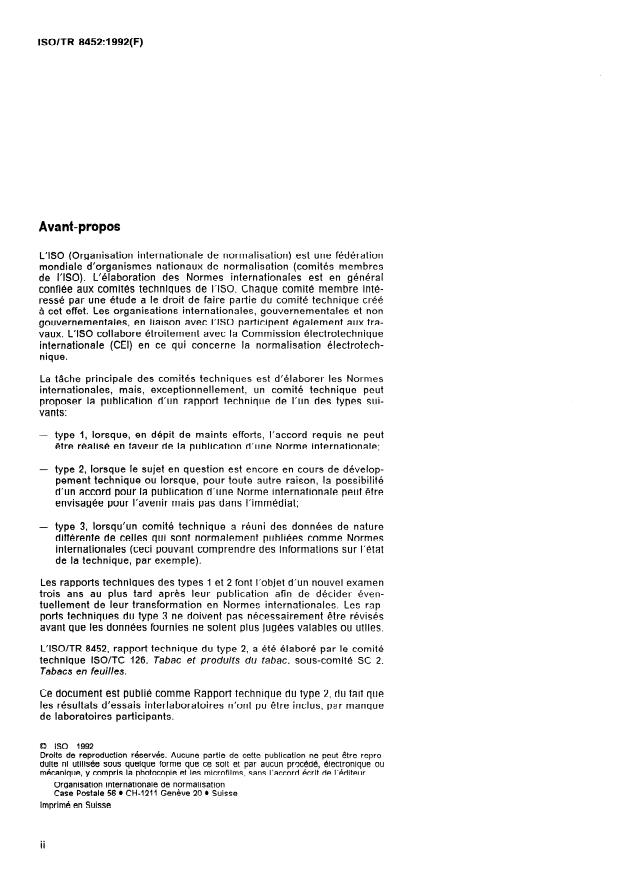 RAPPORT TECHNIQUE ISO/TR 8452:1992(F)