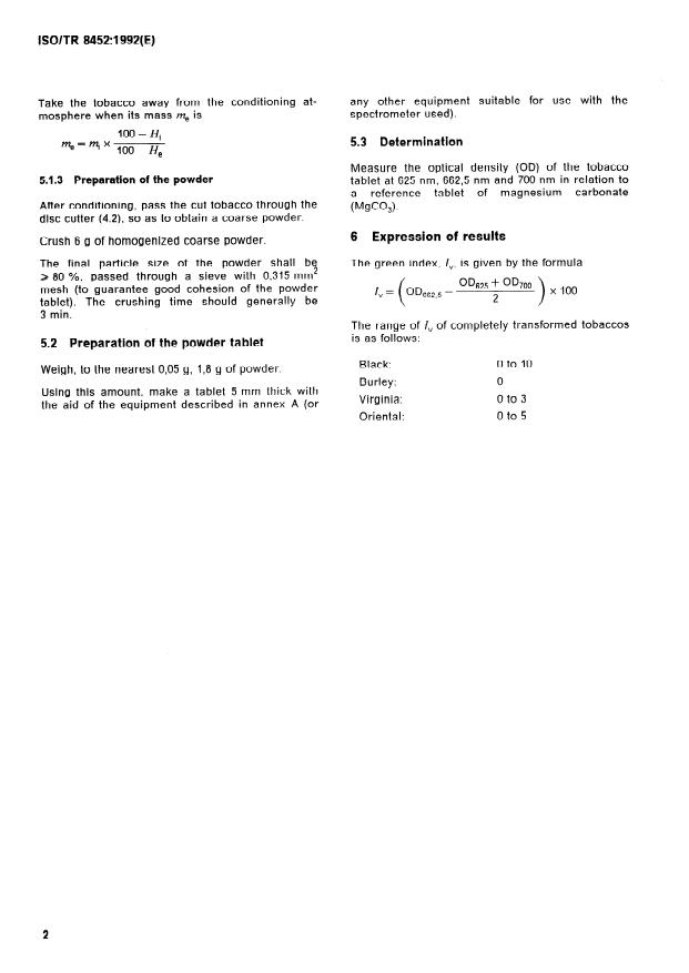 ISO/TR 8452:1992 - Raw tobacco -- Determination of chlorophyll residues content (green index)