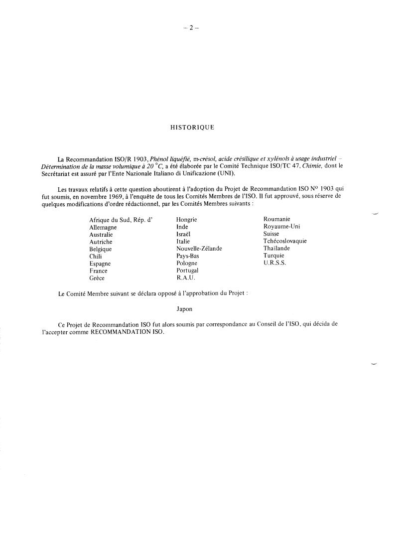 La Recommandation ISO/R 1903, Phénol liquéfié, ni-crésol, acide crésilique et xylénols a usage industriel --