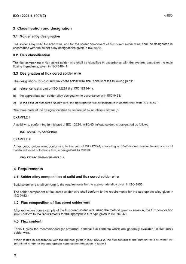 IS0 12224 consists of the following parts, under the general title Solder wire, so/id and flux cored - Specification
