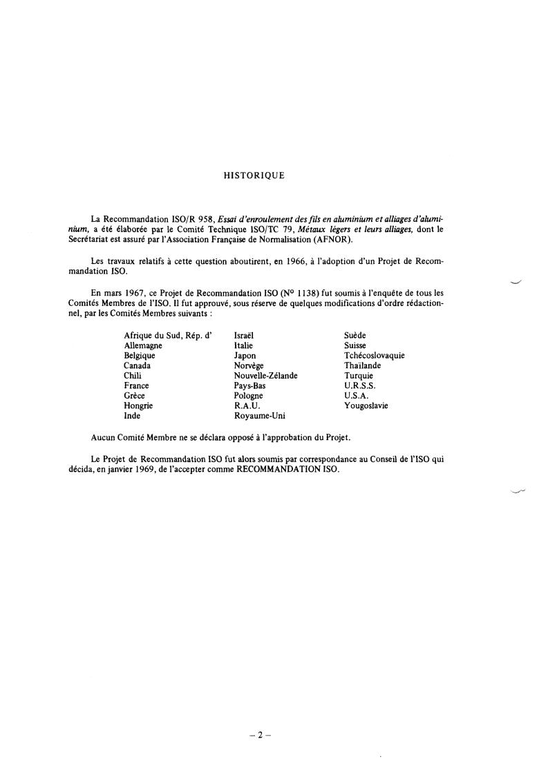 En mars 1967, ce Projet de Recommandation IS0 (NO 1138) fut soumis à l’enquête de tous les