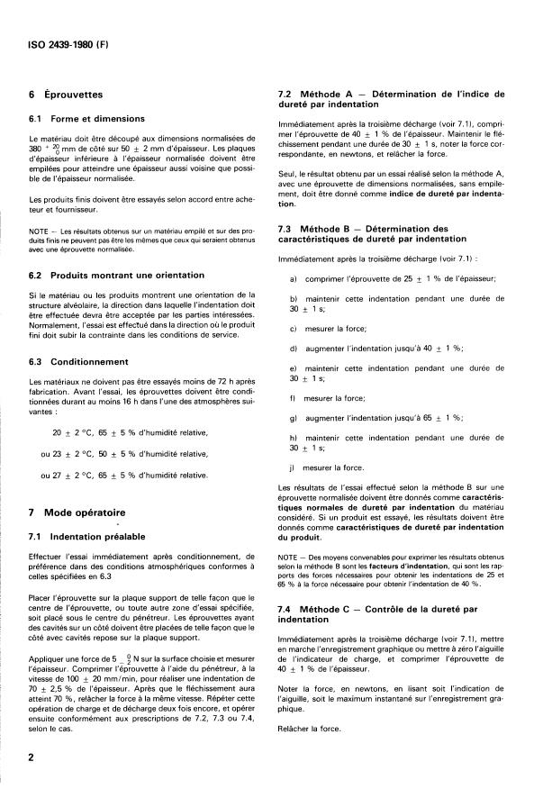 ISO 2439:1980 - Matériaux polymeres alvéolaires souples -- Détermination de la dureté (technique par indentation)