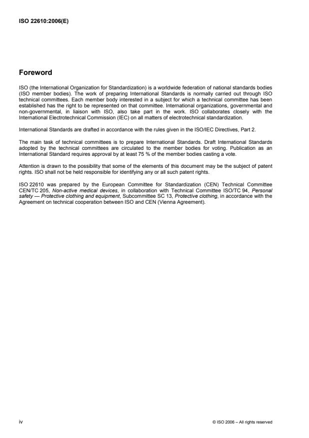 ISO 22610:2006 is classified under the following ICS (International Classification for Standards) categories: 13.340.10 - Protective clothing. The ICS classification helps identify the subject area and facilitates finding related standards.