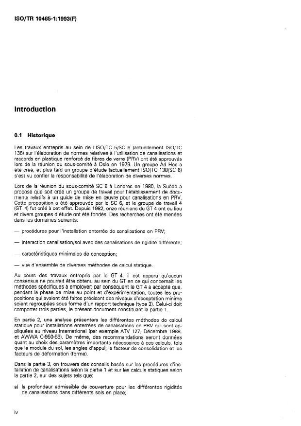 ISO/TR 10465-1:1993 - Installation enterrée de canalisations flexibles en plastique renforcé de fibres de verre/résine thermodurcissable (PRV)