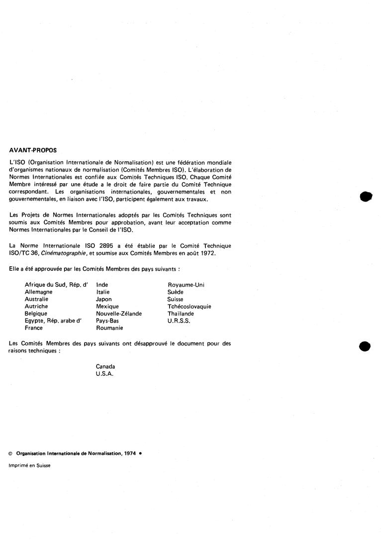 ISO/TC 36, Cinérnatographie, et soumise aux Comités Membres en août 1972.
