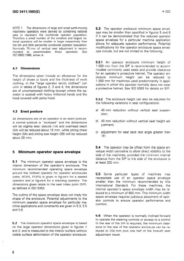 (Main)Earth-moving machinery — Human physical dimensions of operators and minimum operator space envelope
