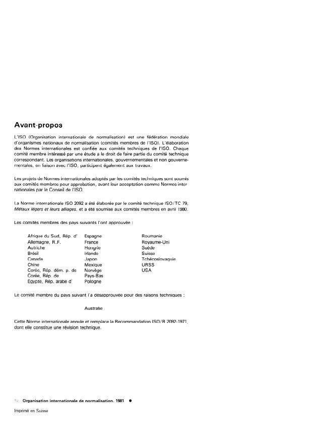 CDU 669.7X72 : 025.4 Réf. no : ISO 2092-1981 (F)